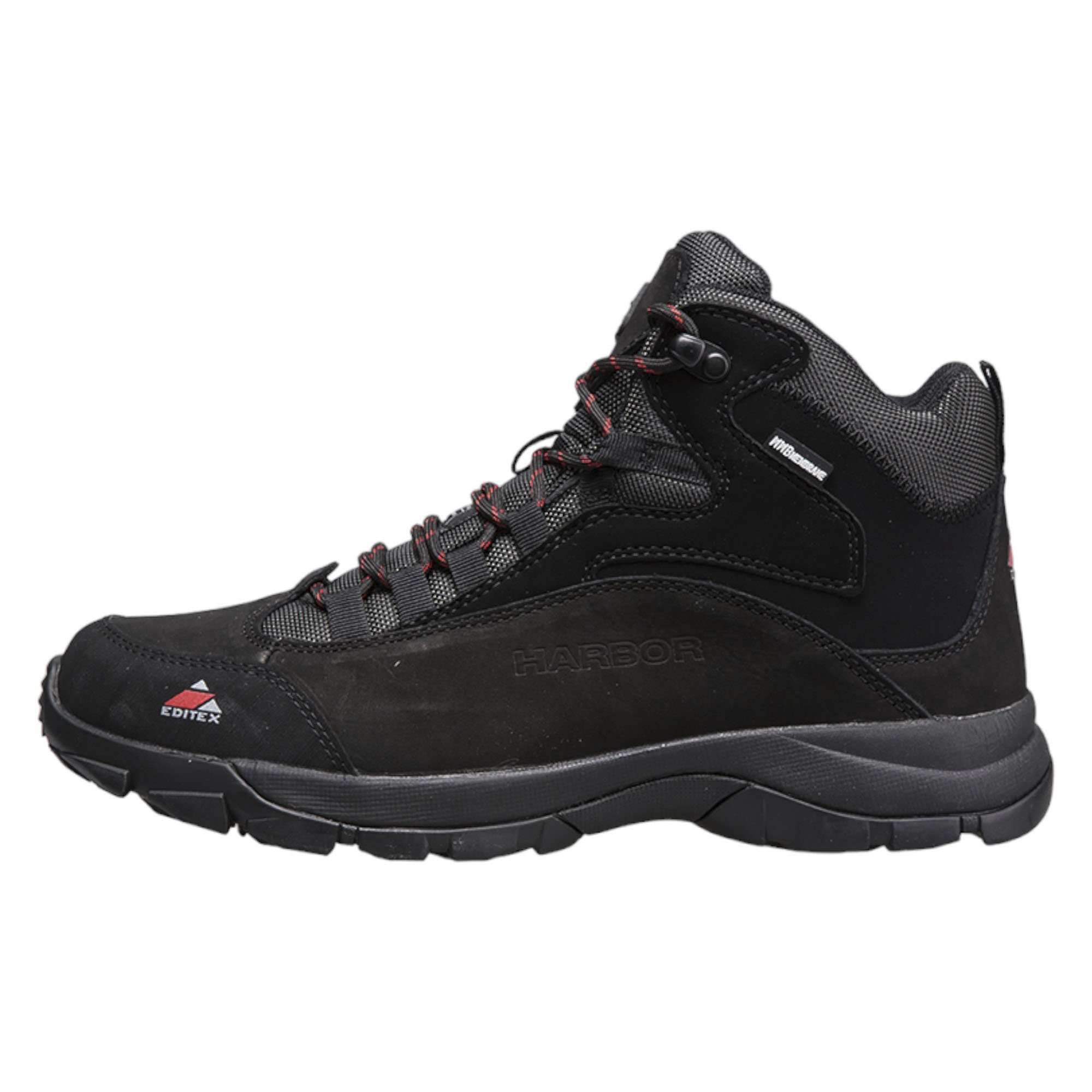 Зимние ботинки Editex Harbor созданы для того, чтобы выдерживать тяжёлые погодные условия и с лёгкостью проходить через труднодоступную местность. Использование актуальных технологий делают данные ботинки отличным выбором для пешей прогулки и для любителей активных видов отдыха. Комбинированный внешний слой на основе нубука с фактурными текстильными вставками позволяет выдерживать длительное механическое воздействие и защищает ноги от попадания влаги внутрь за счёт водоотталкивающей пропитки, а благодаря прошивке из двойной строчки делают изделие износостойким. Мембранный материал Waterproof Windproof Breathable позволяет ботинкам создавать комфортный микроклимат, не давая образовываться парниковому эффекту. Современный утеплитель Thinsulate за счёт ультратонких микроволокон обеспечивает высокий уровень теплоизоляции, сохраняя тёплый воздух внутри, что в сочетании со съёмной противомикробной стелькой OrthoLite, препятствующая образованию неприятного запаха, создаётся высокий уровень комфорта во время ношения. Технологичная подошва, сделанная по технологии Ultra Slip Protection, обеспечивает высокий уровень сцепления с поверхностью благодаря развитым протекторам и не теряет своих свойств даже при низких температурах, позволяя спокойно проходить пересечённую местность. Надёжность и плотность посадки обеспечивается за счёт износостойких шнурков на прочных петлях, позволяя с удобством сидеть ботинкам на ноге даже в сложных условиях местности. Благодаря износостойким материалам ботинки выдерживают чистку без потери цвета и формы. Практичный дизайн чёрного цвета удачно сочетается не только со спортивной экипировкой, но также и с повседневной одеждой, позволяя ботикам стильно выглядеть при обычной прогулке по городу.Характеристики: