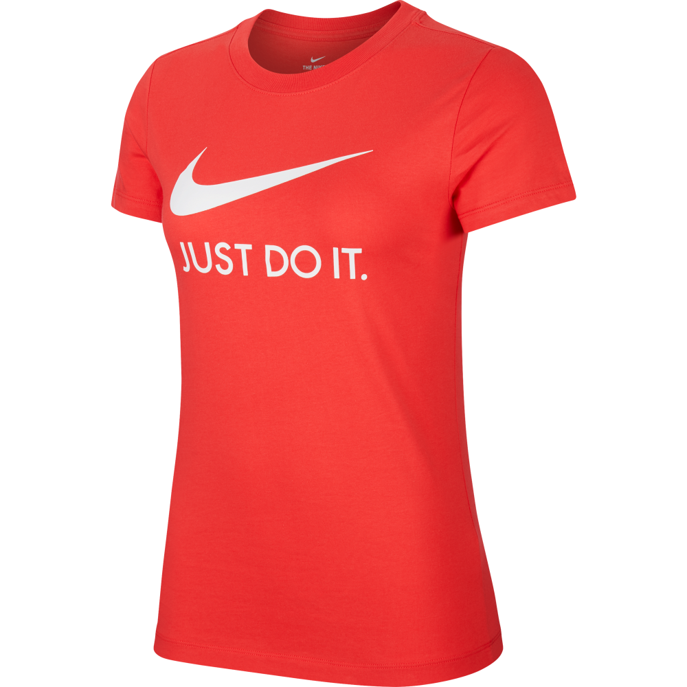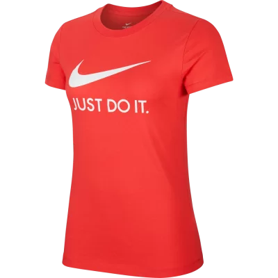 Спортивная женская футболка от бренда Nike подарит комфорт и свободу движений в течение всего дня. Фирменный дизайн в ярком красном цвете дополняет графика «Just Do It». Вы сможете создать свой неотразимый образ и быть уверенной в себе в любой ситуации. Футболка подходит как для занятия спортом, так и повседневного ношения. Материал джерси на основе хлопка приятно ощущается на теле и обладает высокой износостойкостью. Ткань не требует частого ухода, не растягивается и не скатывается со временем. Круглый вырез и плоские швы не доставляют дискомфорта во время движений и не раздражают кожу. Стандартный крой позволяет активно двигаться без дискомфорта. Оптимальная длина футболки и рукавов не дает ей задираться во время движений руками. Такая универсальная футболка должна быть в гардеробе любой девушки.Особенности и преимущества: