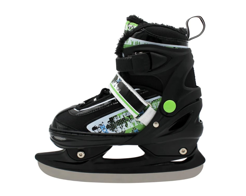 Современные раздвижные коньки сочетают в себе надежность и высокое качество, предназначены для любительского катания на открытом льду и крытых катках. Внешний жесткий ботинок из морозостойкого пластика надежно защищает от ударов, а также обеспечивает поддержку ноги во время катания. Внутренний ботинок с мягкой стелькой из пеноматериала обеспечивает комфорт и удобство пользователя. Наличие утепленной искусственным мехом подкладки гарантирует длительное сохранение тепла. Специализированная раздвижная конструкция коньков позволяет использовать их в течение многих сезонов даже с учетом изменения размера ноги пользователя. Раздвижной механизм позволяет менять размер коньков в пределах 4 размеров. Коньки оснащены удобной системой фиксации на ноге со шнуровкой, клипсой с фиксатором и застежкой на липучке. Надежное лезвие коньков выполнено из стального сплава, который не подвержен преждевременной коррозии. Стильный дизайн в черном цвете с яркими вставками подойдет как взрослым, так и детям.В комплекте с коньками идет удобная сумка для переноски и хранения.