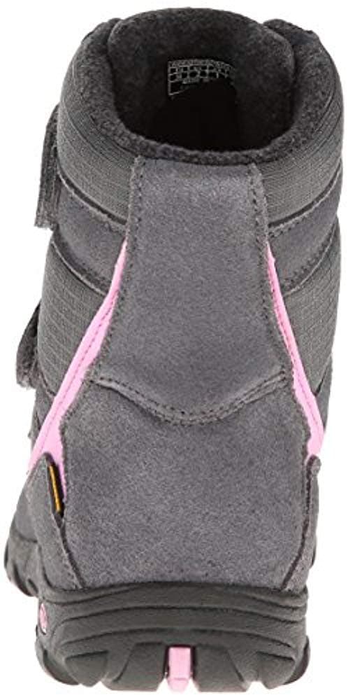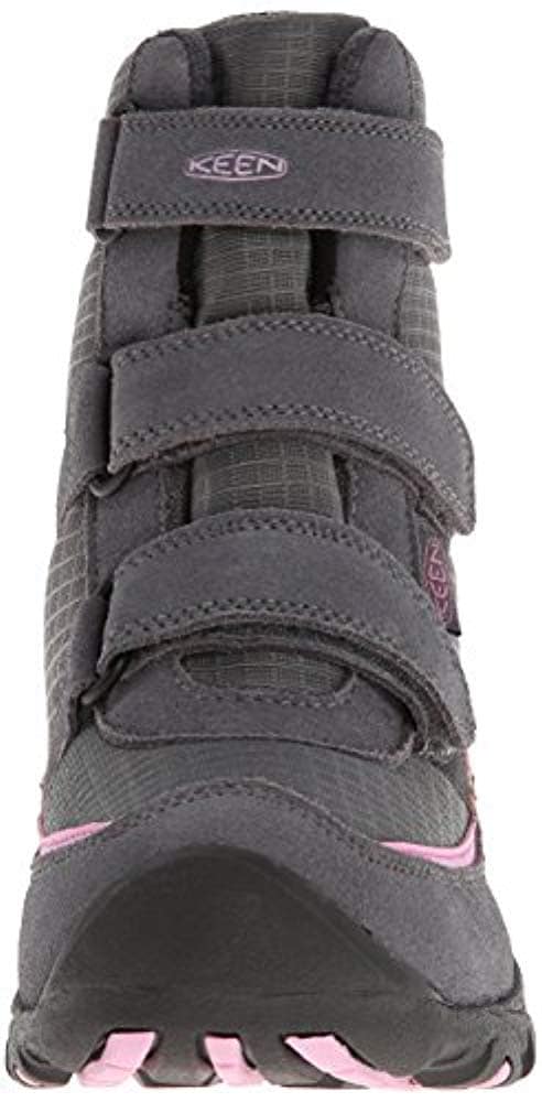 Снегоходы Trezzo от бренда Keen самый подходящий вариант для суровых зим и морозов. Верх ботинок изготовлен из замши и текстиля с пропиткой против грязи и воды. Благодаря дышащей мембране ботинки обеспечивают комфортные условия ногам, выводя на поверхность ткани излишки влаги и не позволяя холодному воздуху и снегу проникать вовнутрь. Технологичный утеплитель KEEN.Warm™ с добавлением бамбукового угля надолго сохраняет ноги в тепле. Ребенок сможет играть в снегу, кататься на санках или снегокате не замерзая. Широкий язычок плотно закрывает ногу и фиксируется застежками-липучками. Высокая резиновая подошва не промерзает даже при низких температурах, и не оставляет росчерков при ходьбе в помещении. Голенище высотой 14 сантиметров, надежно укрывает ногу и не позволяет высокому снегу проникать вовнутрь ботинка. Стильный серый цвет, дополнен контрастными розовыми деталями, которые перекликаются с красными вставками на подошве.